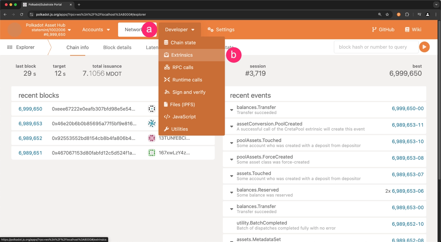 As stated in the Test Environment Setup section, this tutorial is based on the assumption that you have an instance of Polkadot Asset Hub running locally. Therefore, the demo liquidity pool will be created between DOT and PPM tokens. However, the same steps can be applied to any other asset on Asset Hub.