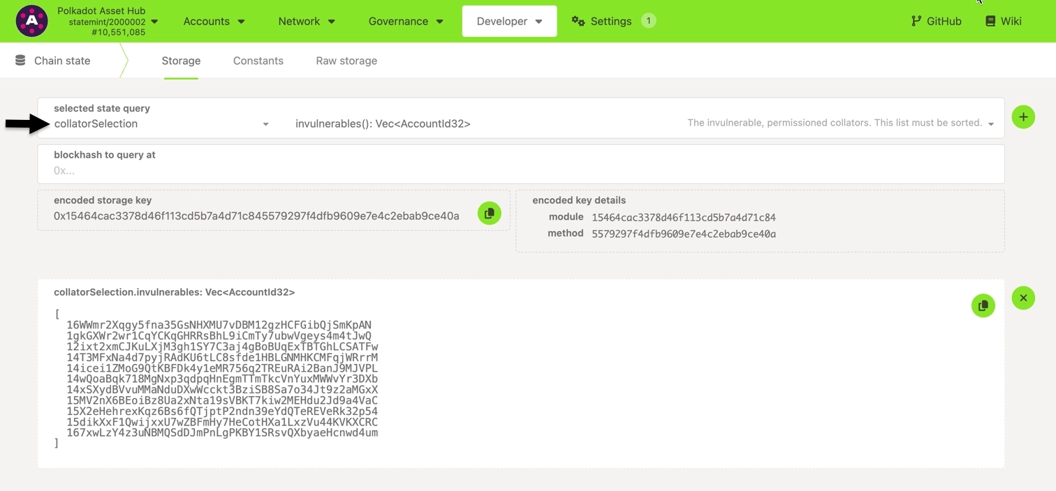 collatorSelection.invulnerables().