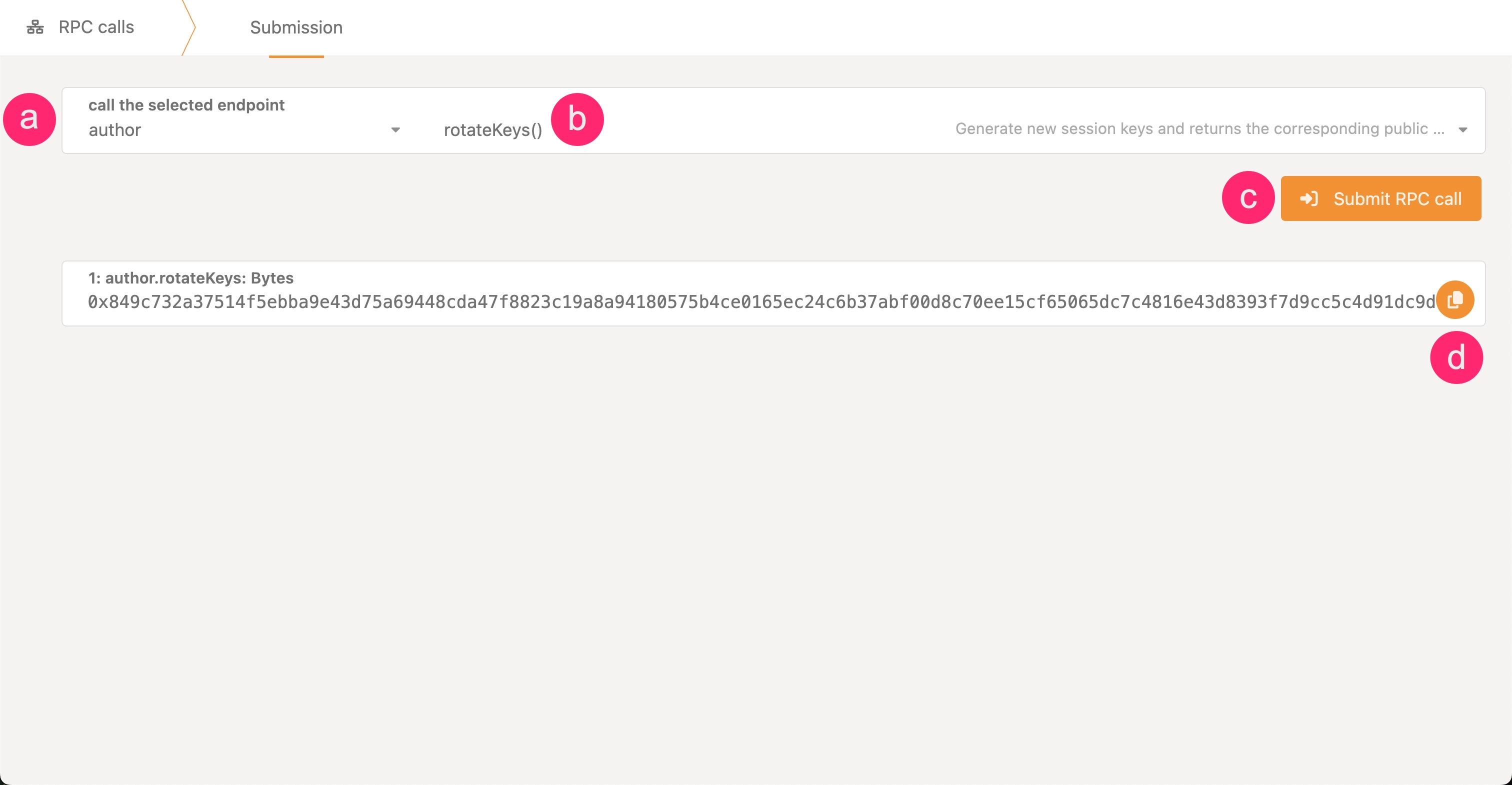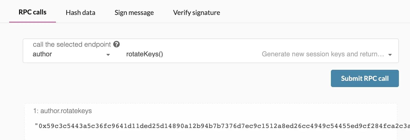 author_rotateKeysRPC call and execute it:- Select the author endpoint.