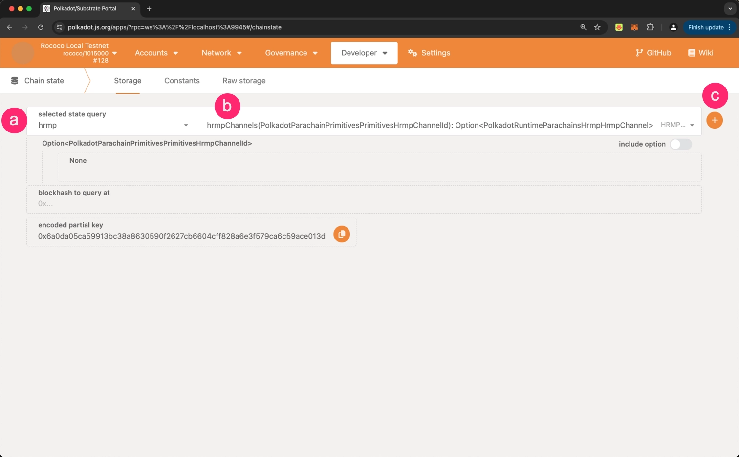 hrmpChannelscall. - Click the + button to execute the query.