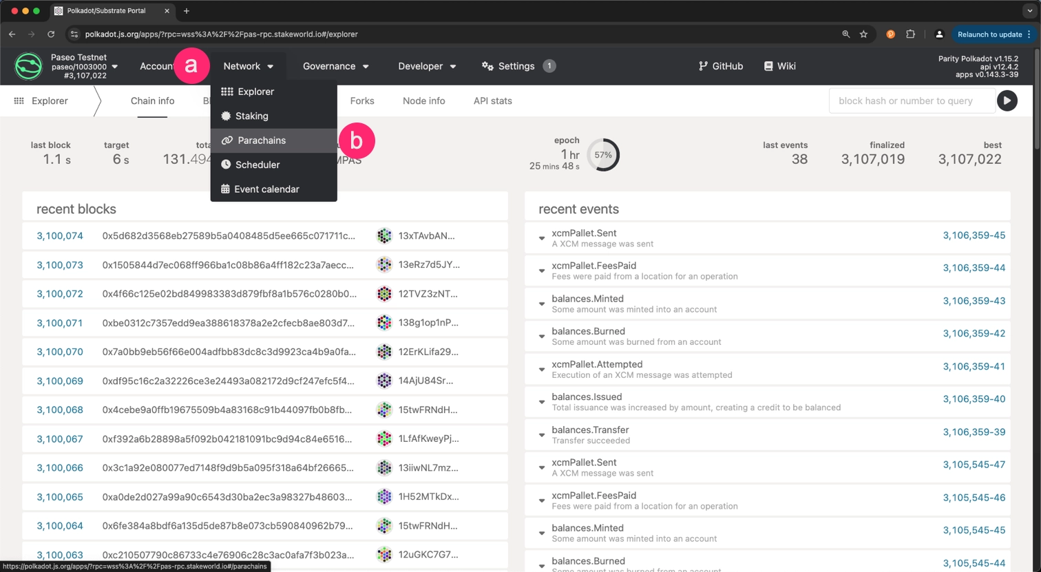 - Select the Parachains option from the dropdown menu.