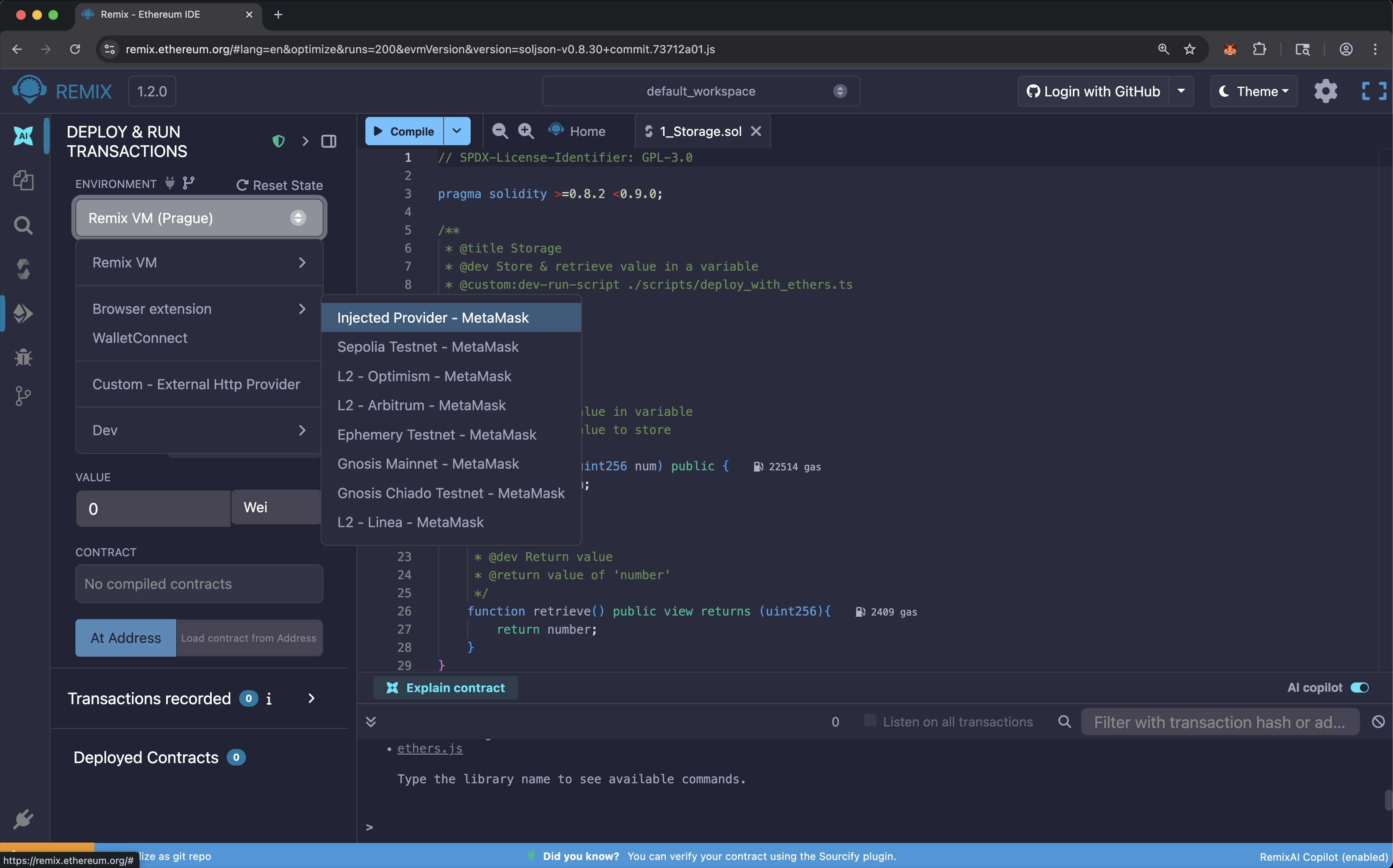 Ready to start using Remix? Learn how to compile, test, and deploy a basic contract.