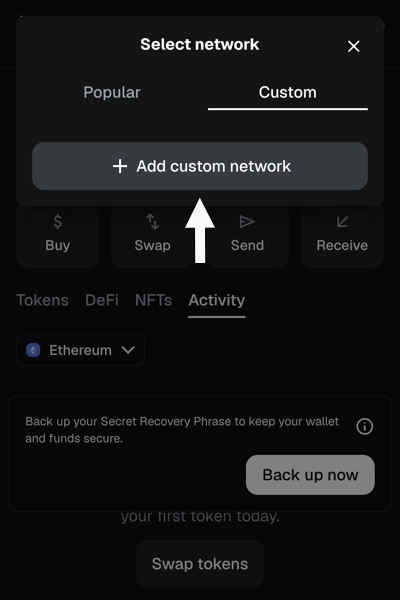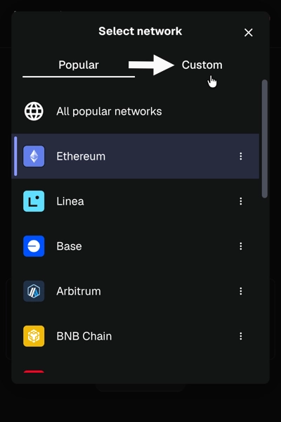 Click on the Add a custom network button.