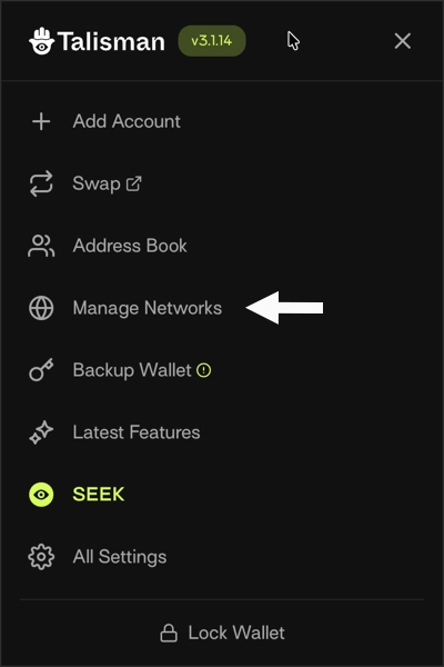 Click the button Manage Networks.